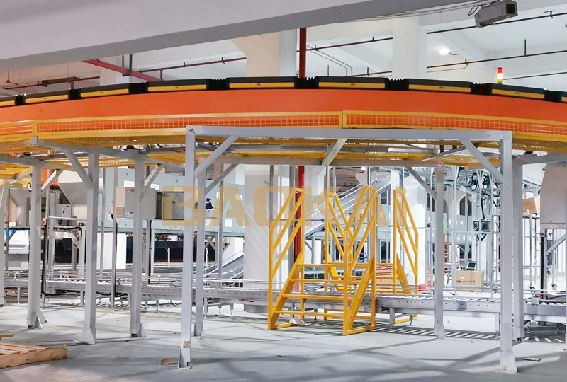 鞋服類大型項目,集成螺旋機,通道機,交叉帶分揀機,提升機等智能設備和寶開BICS信息管理系統(tǒng),通道機效率達420箱/小時,分揀效率達8000-10000件/小時。