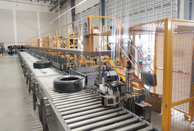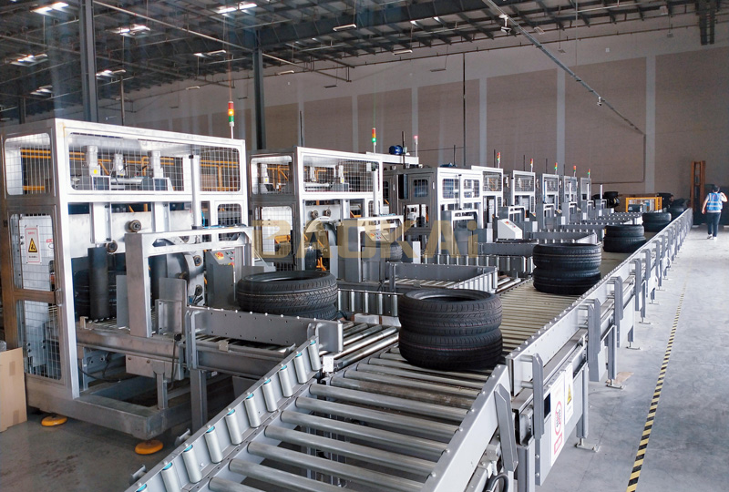 汽配行業(yè)新項(xiàng)目:集成了臥式環(huán)體打包機(jī)、輸送線、直角分合流等硬件設(shè)備;技術(shù)上實(shí)現(xiàn)了前置掃描到后置貼標(biāo)的全程實(shí)時(shí)跟蹤,一期八臺(tái)打包機(jī),可滿足480個(gè)輪胎/小時(shí)的打包效率,采用的分合流裝置,輸送效率可以滿足未來(lái)960個(gè)輪胎/小時(shí)的分合輸送效率。