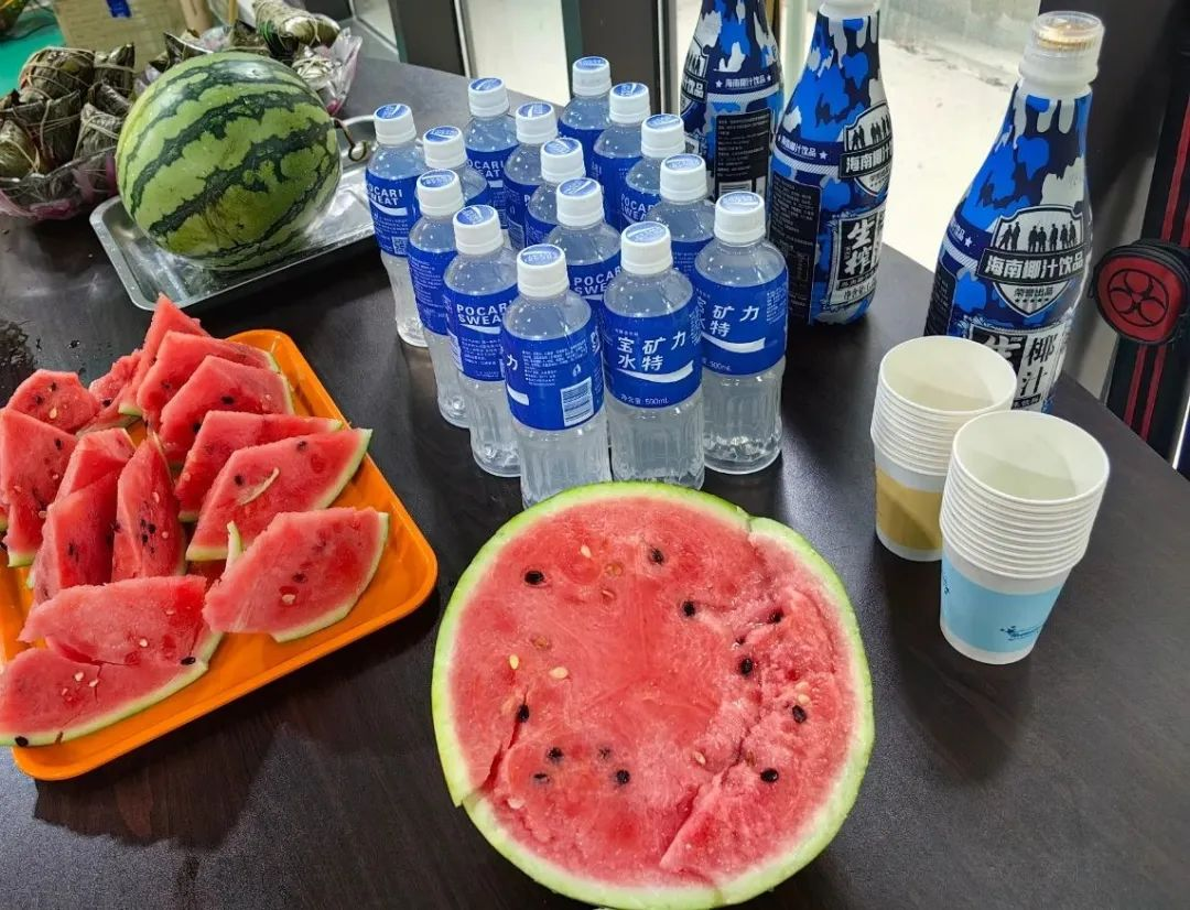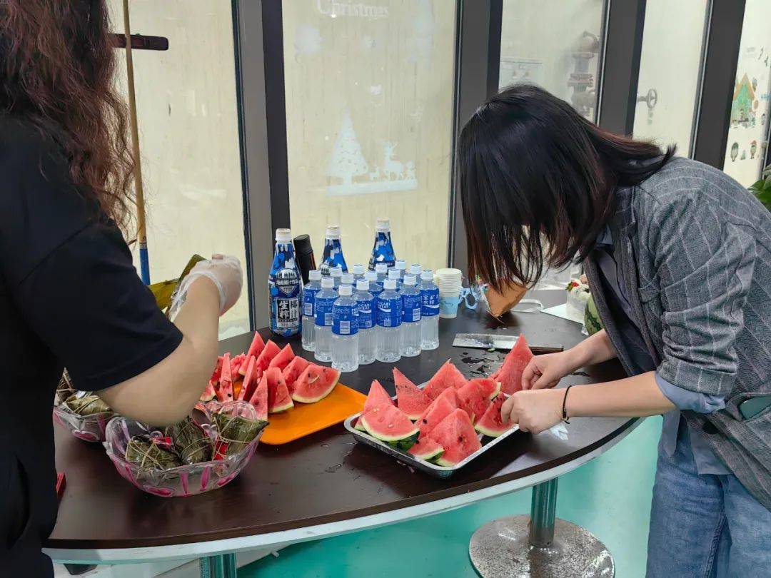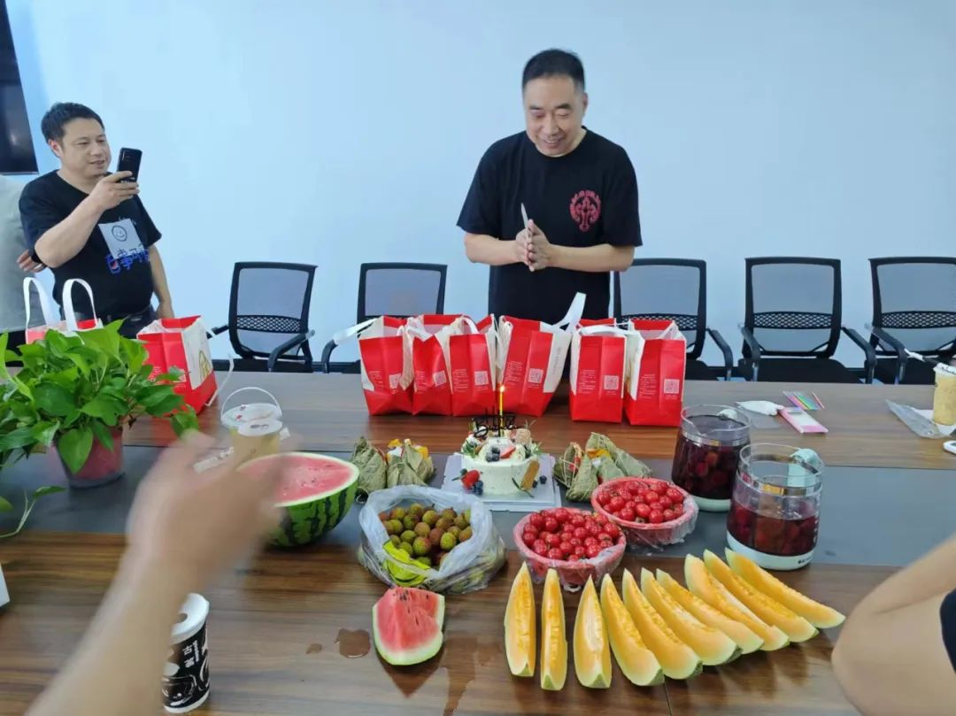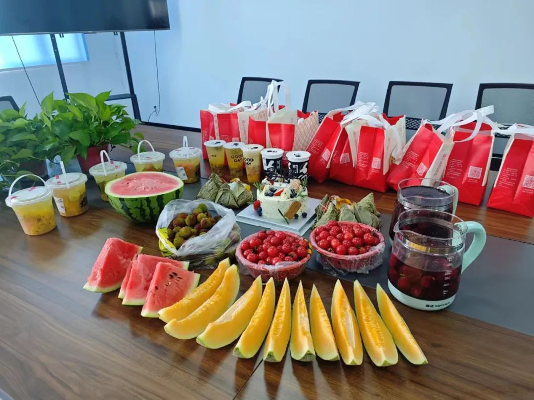 寶開工會(huì)委員會(huì)提前籌備,準(zhǔn)備了生日蛋糕、不同口味的粽子、水果、飲料等。