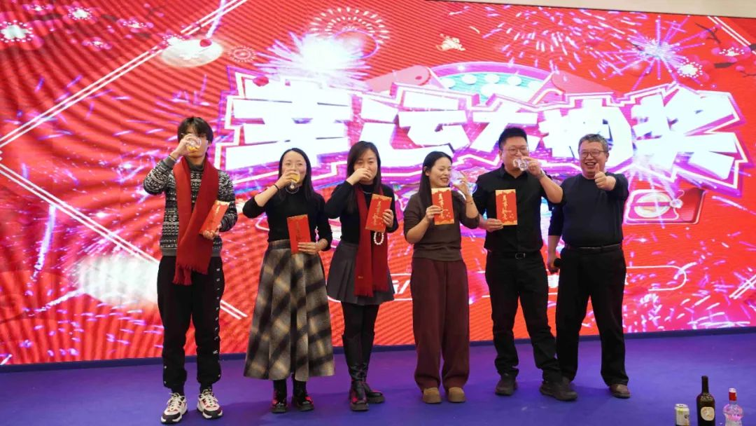 各位領導逐一上臺為大家抽取并為幸運兒頒發(fā)獎品,同時臨時增設超額獎勵和隨機紅包,逐漸將晚宴氣氛推向高潮。